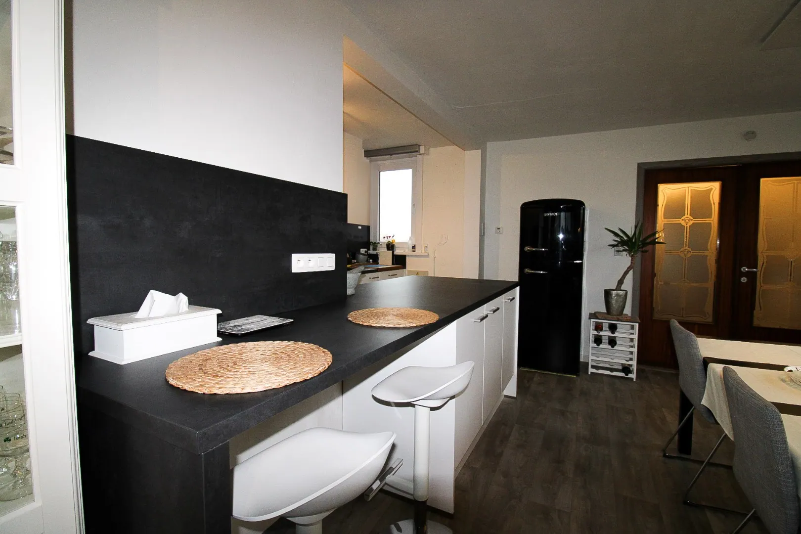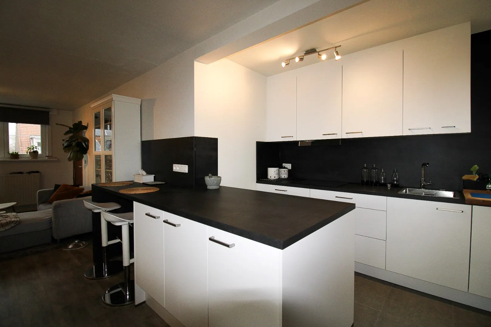 Bij binnenkomst wordt u meteen verwelkomd door een ruime, lichtrijke leefruimte die uitnodigt tot gezelligheid en ontspanning. De keuken straalt charme uit en combineert een praktische indeling met voldoende opbergruimte.