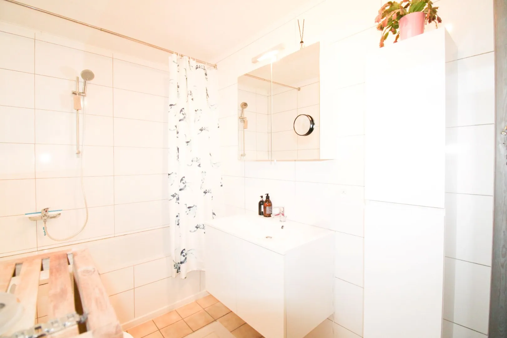 De ruime slaapkamer biedt rust, comfort en voldoende plaats voor een tweepersoonsbed en extra opbergruimte. Daarnaast is er een handige tussenruimte, die men volledig naar wens kan inrichten. De moderne badkamer is volledig uitgerust en voldoet aan alle comfortwensen.