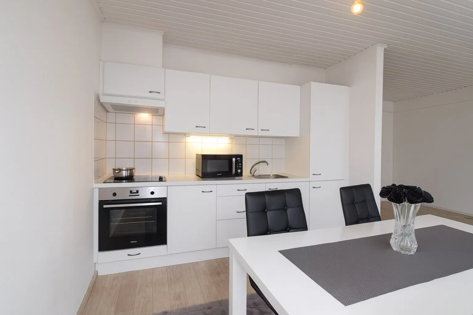 De keuken sluit naadloos aan bij de leefruimte en combineert functionaliteit met charme. Ze is praktisch ingericht, voorzien van voldoende kasten en werkruimte, en voelt warm en huiselijk aan. Dankzij het open karakter blijft het contact met de leefruimte behouden, wat koken nog gezelliger maakt.