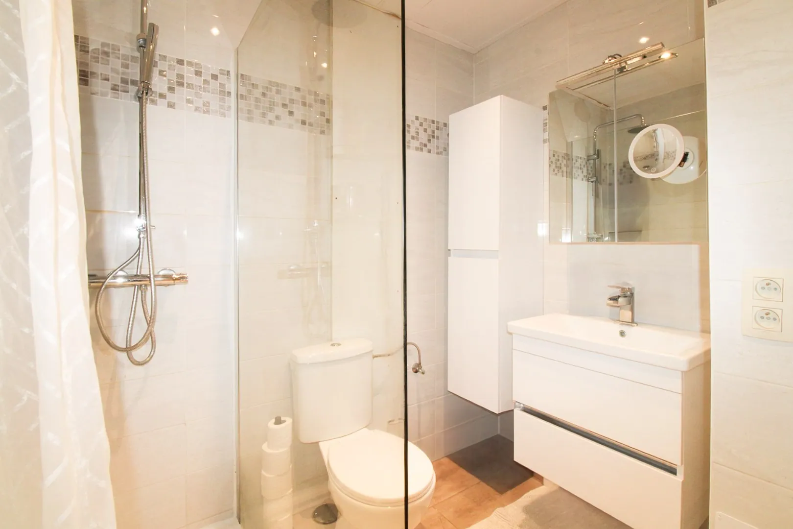 Het appartement beschikt over twee comfortabele slaapkamers, die zorgen voor de nodige rust en privacy. De moderne badkamer voldoet aan alle hedendaagse comfortwensen. Daarnaast is er extra opbergruimte, ideaal voor het opbergen van huishoudelijke apparatuur en andere spullen. Het zonnige terras is een echte troef van dit appartement, waar u ongestoord kunt genieten van de buitenlucht en de rust.