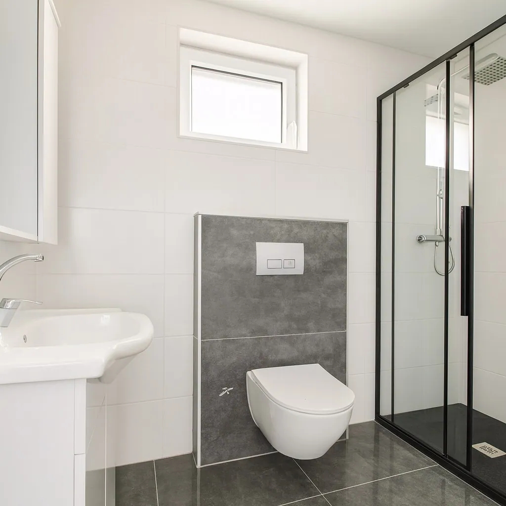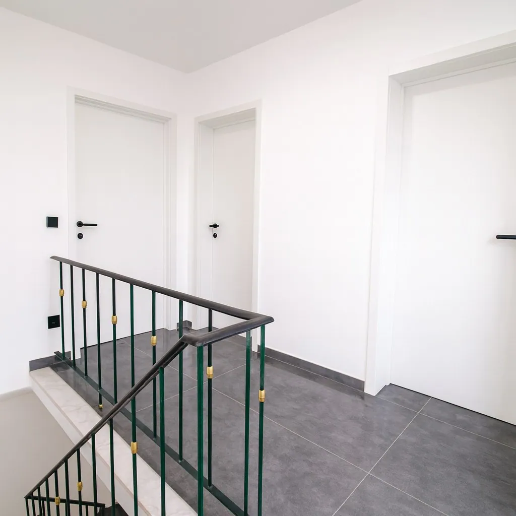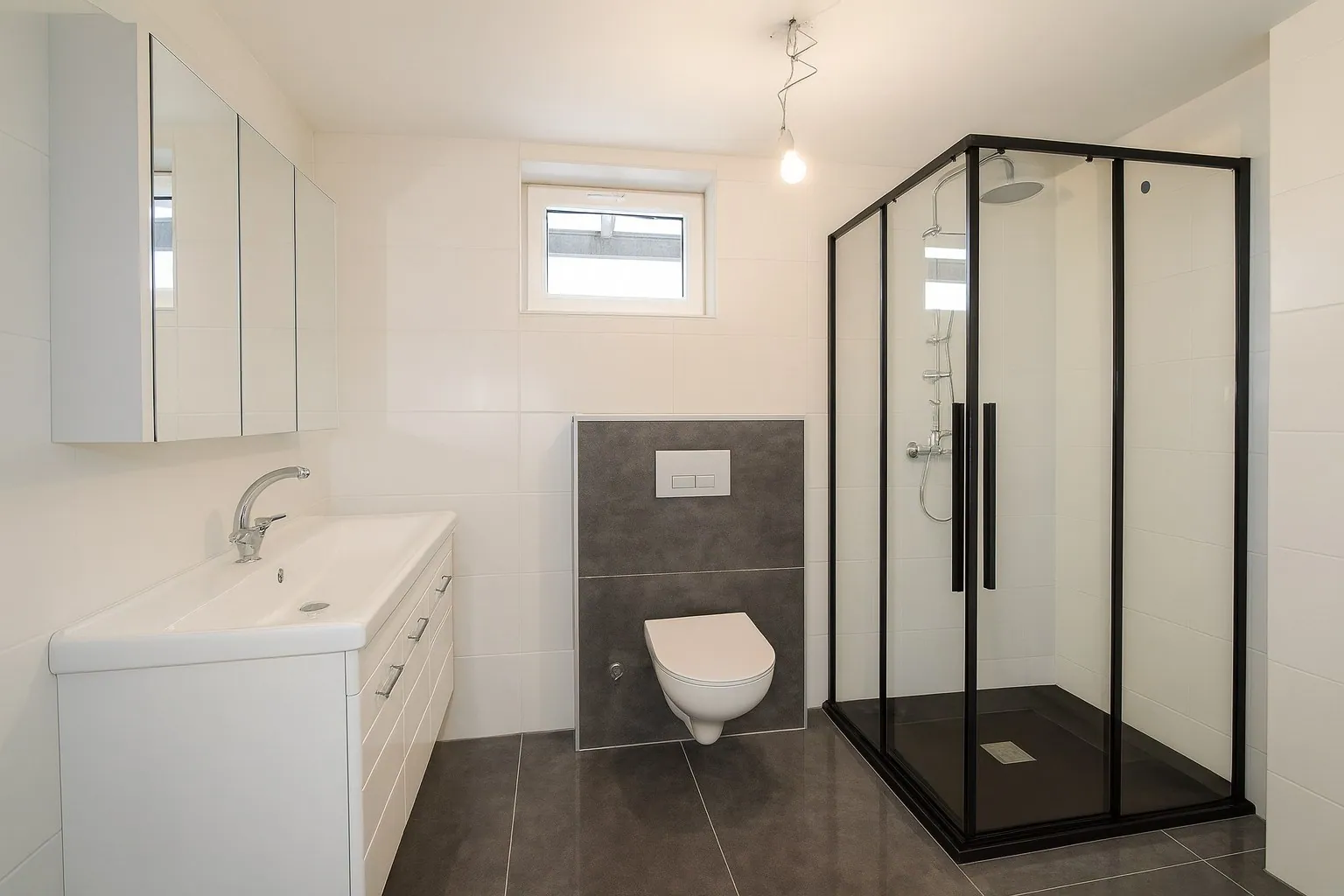 De tweede verdieping omvat drie volwaardige slaapkamers, elk ruim en ideaal voor een groeiend gezin. Ook hier is gedacht aan praktisch comfort: een tweede badkamer met opnieuw een inloopdouche, lavabo en toilet zorgt ervoor dat iedereen kan genieten van privacy en gemak.
