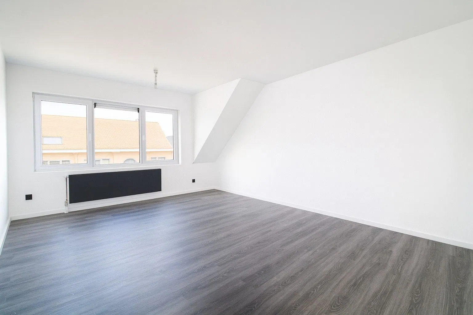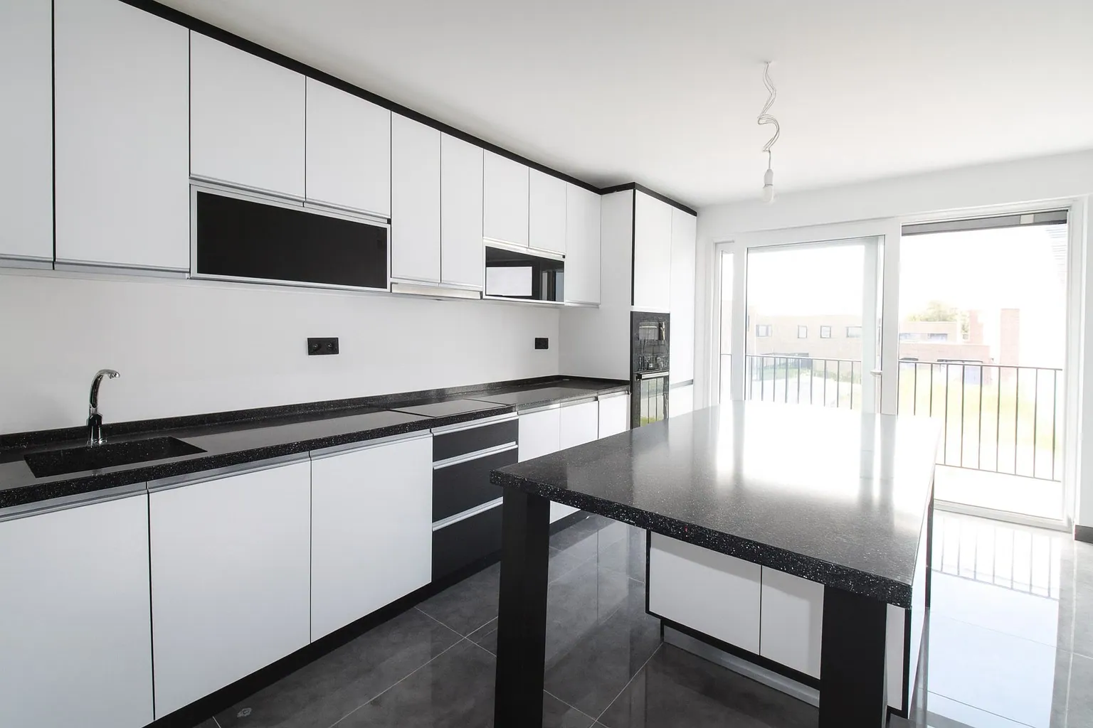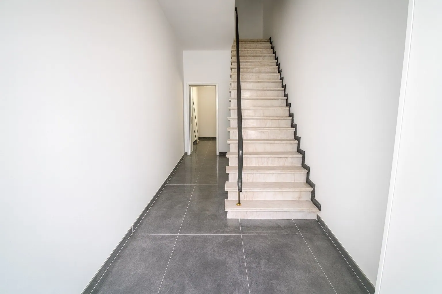 Op de eerste verdieping wordt u verwelkomd in een bijzonder lichtrijke leefruimte. Grote ramen laten het daglicht rijkelijk binnen en versterken het gevoel van ruimte. De open keuken sluit hier naadloos op aan en is volledig vernieuwd met moderne toestellen en een luxueuze afwerking. Vanuit de leefruimte en keuken stapt u zo het aangename terras op, vanwaar u een prachtig zicht heeft over de tuin. Een volledig uitgeruste badkamer met inloopdouche, lavabo en toilet vervolledigt deze verdieping en garandeert dagelijks comfort.