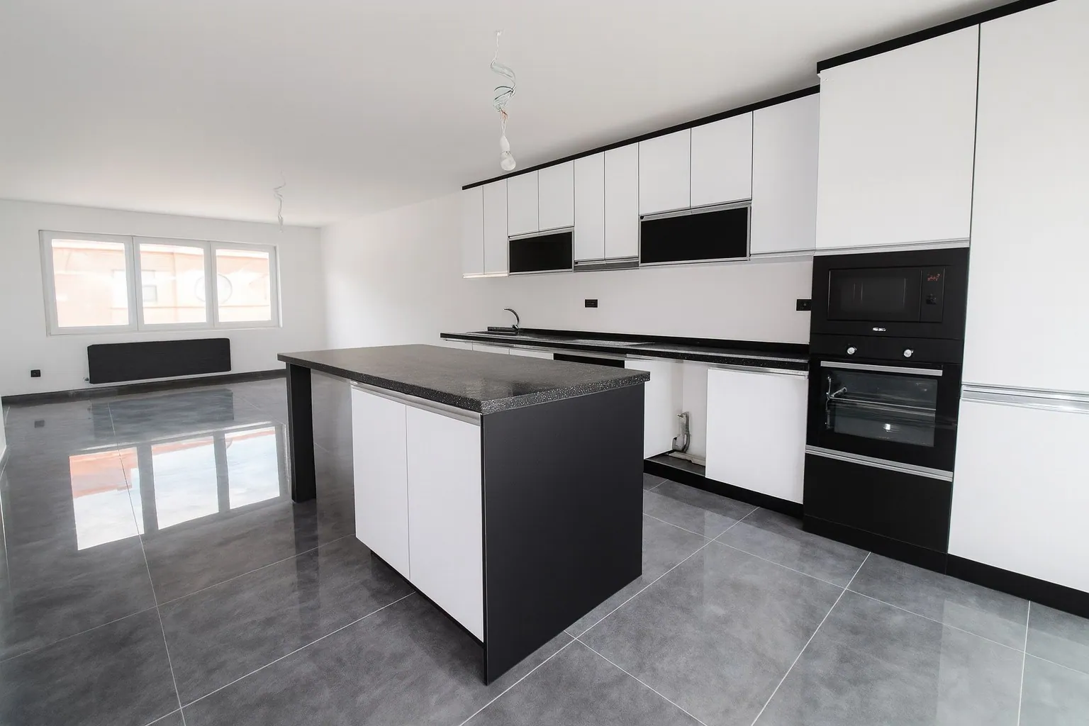 Op de eerste verdieping wordt u verwelkomd in een bijzonder lichtrijke leefruimte. Grote ramen laten het daglicht rijkelijk binnen en versterken het gevoel van ruimte. De open keuken sluit hier naadloos op aan en is volledig vernieuwd met moderne toestellen en een luxueuze afwerking. Vanuit de leefruimte en keuken stapt u zo het aangename terras op, vanwaar u een prachtig zicht heeft over de tuin. Een volledig uitgeruste badkamer met inloopdouche, lavabo en toilet vervolledigt deze verdieping en garandeert dagelijks comfort.