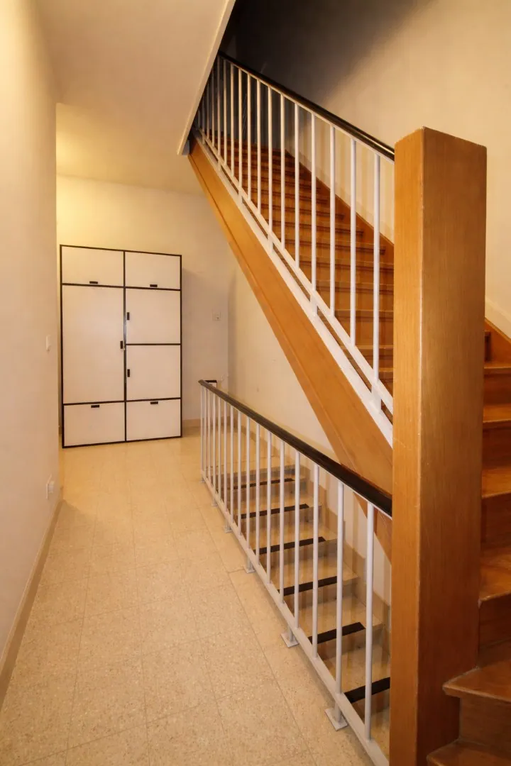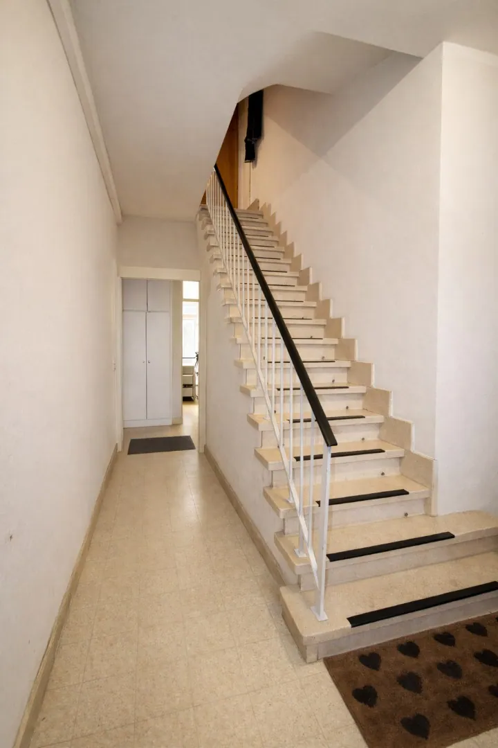 Het appartement strekt zich uit over drie volwaardige verdiepingen en combineert authentieke elementen met hedendaags wooncomfort. In 2021 onderging het gebouw een grondige renovatie, waarbij alle zware structurele werken werden uitgevoerd. Elektriciteit en loodgieterij werden volledig vernieuwd, de zoldervloer werd geïsoleerd en het appartement werd uitgerust met een mechanisch ventilatiesysteem type D en een nieuwe gascondensatieketel. Dit resulteert in een instapklare woonst met een EPC-label D.