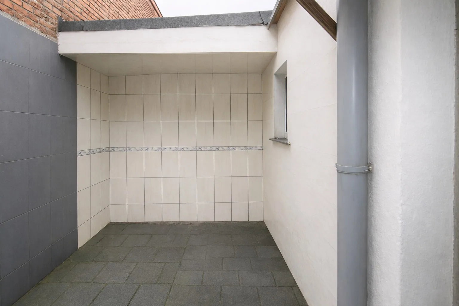 Het gelijkvloers biedt een lichte en open leefruimte die direct een warme en huiselijke sfeer uitstraalt. Aansluitend bevindt zich een gesloten keuken, praktisch ingedeeld en voorzien van toestellen en opbergruimte. De badkamer is modern afgewerkt en voorzien van een inloopdouche en toilet, terwijl de aangrenzende wasplaats plaats biedt voor een wasmachine en droogkast. Vanuit het gelijkvloers heeft u bovendien toegang tot een gezellige koer, een kleine tuin waar u kunt genieten van de buitenlucht.